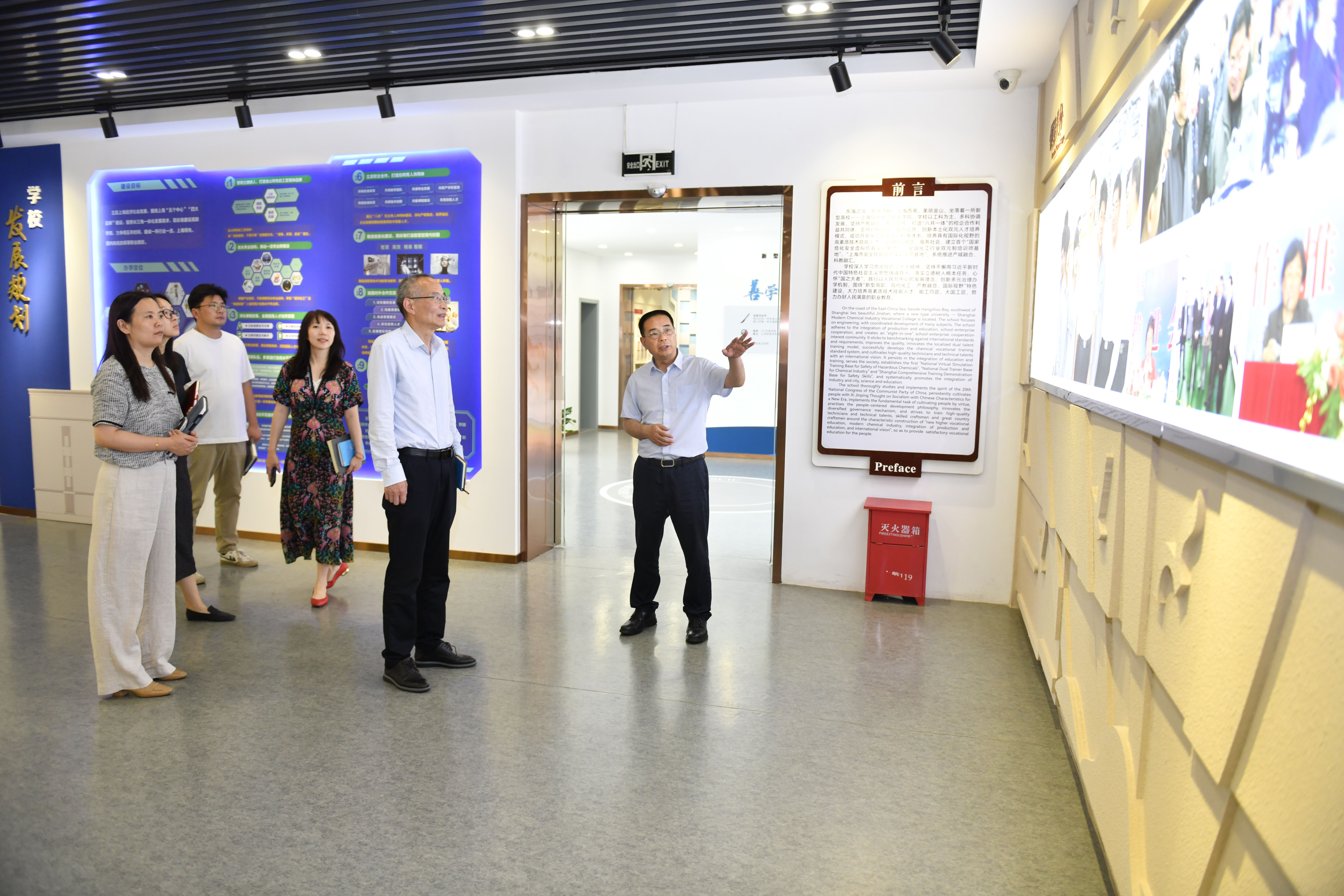 在高炬的陪同下,顾明欢一行参观了学校校史馆和化工综合实训大楼等场所。在校史馆,通过详实的史料、生动的展品和细致的讲解,顾明欢一行全面了解了学校的发展历程、办学成就以及深厚的文化底蕴;在实训大楼,顾明欢一行实地察看了先进的实训设备、教学场景,对学校紧密对接产业需求、强化实训教学的做法给予了高度评价。