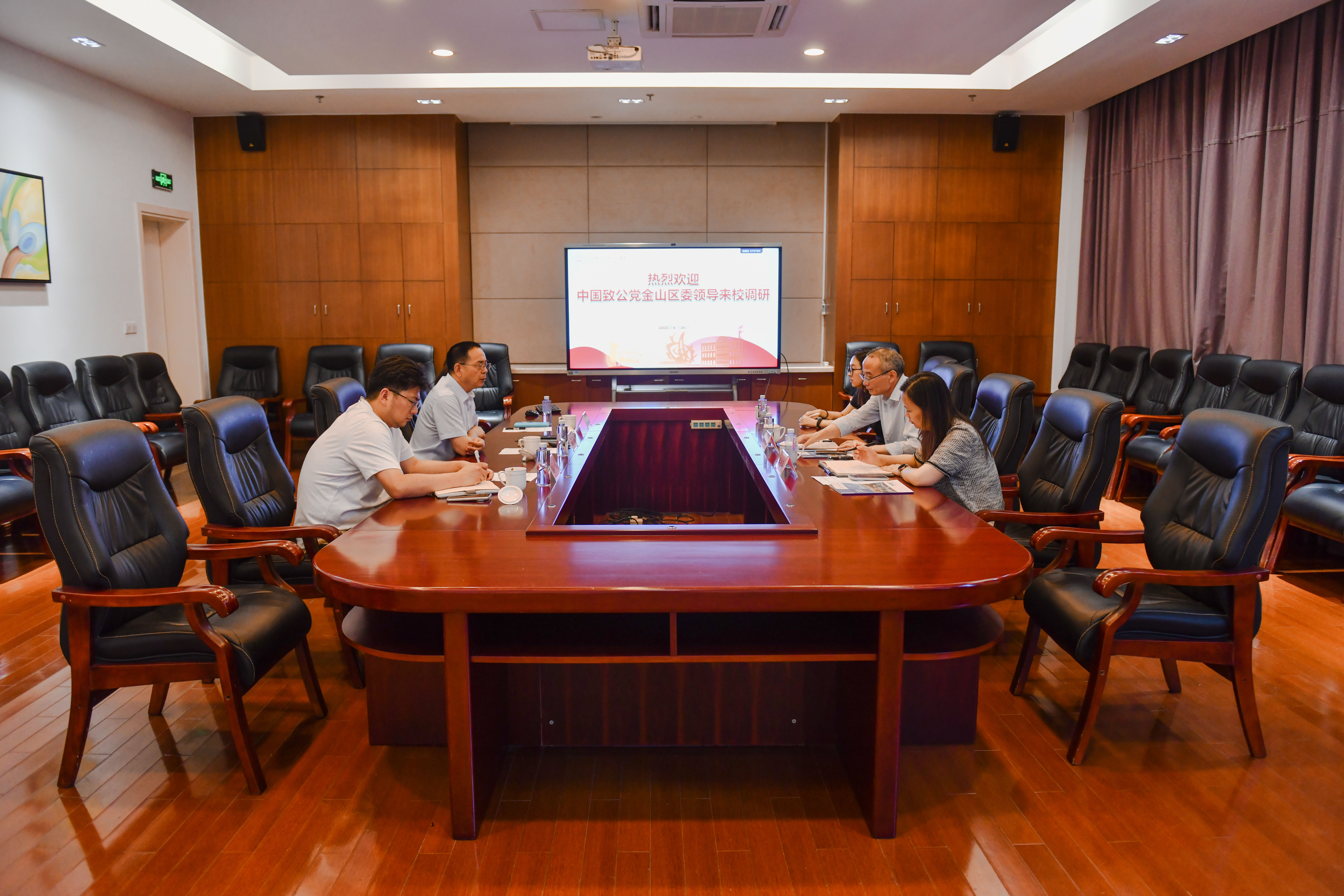 6月26日,中国致公党金山区委主委顾明欢莅临学校开展调研活动,学校党委书记高炬予以热情接待。双方就学校发展建设等相关议题进行了深入交流。
