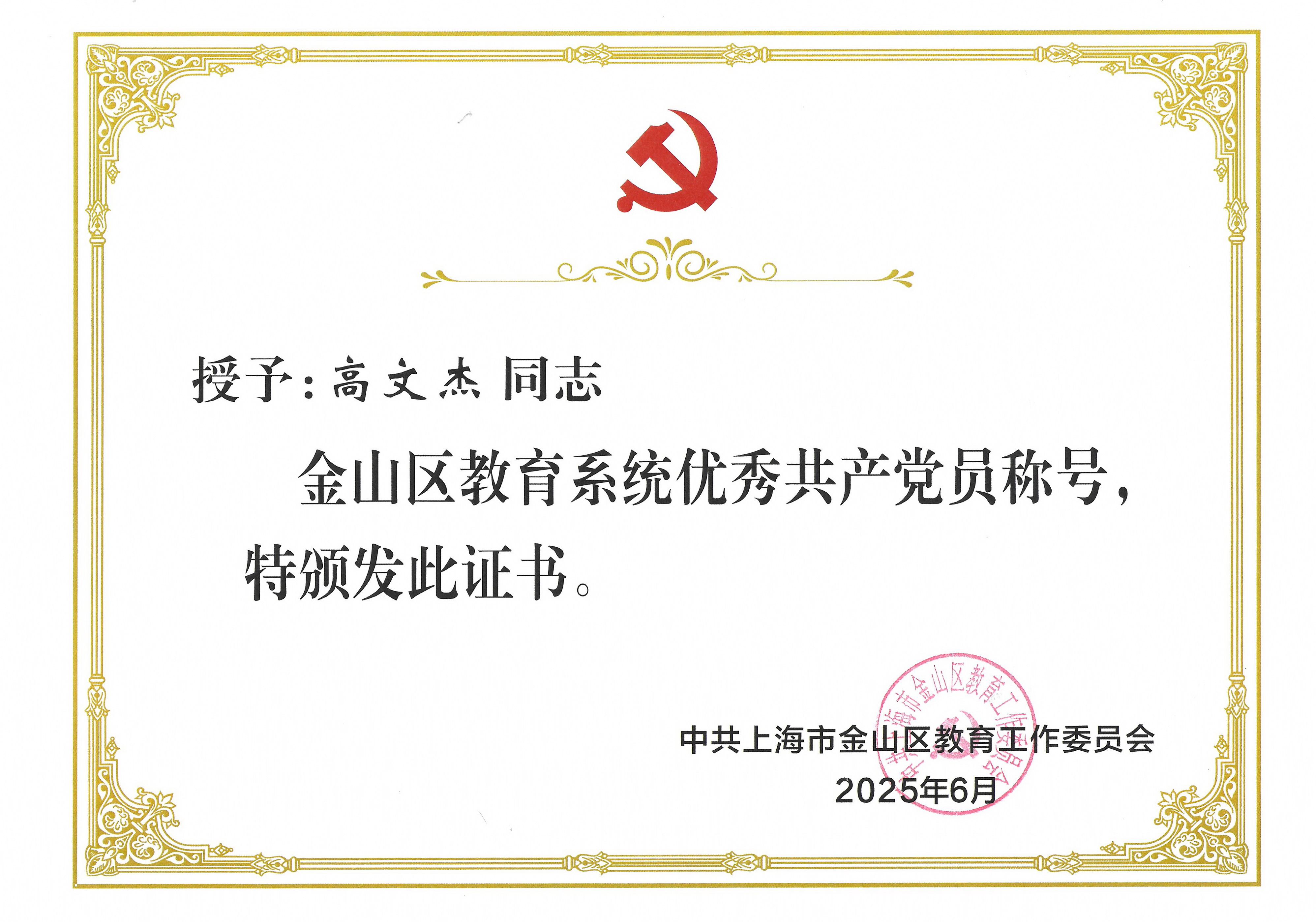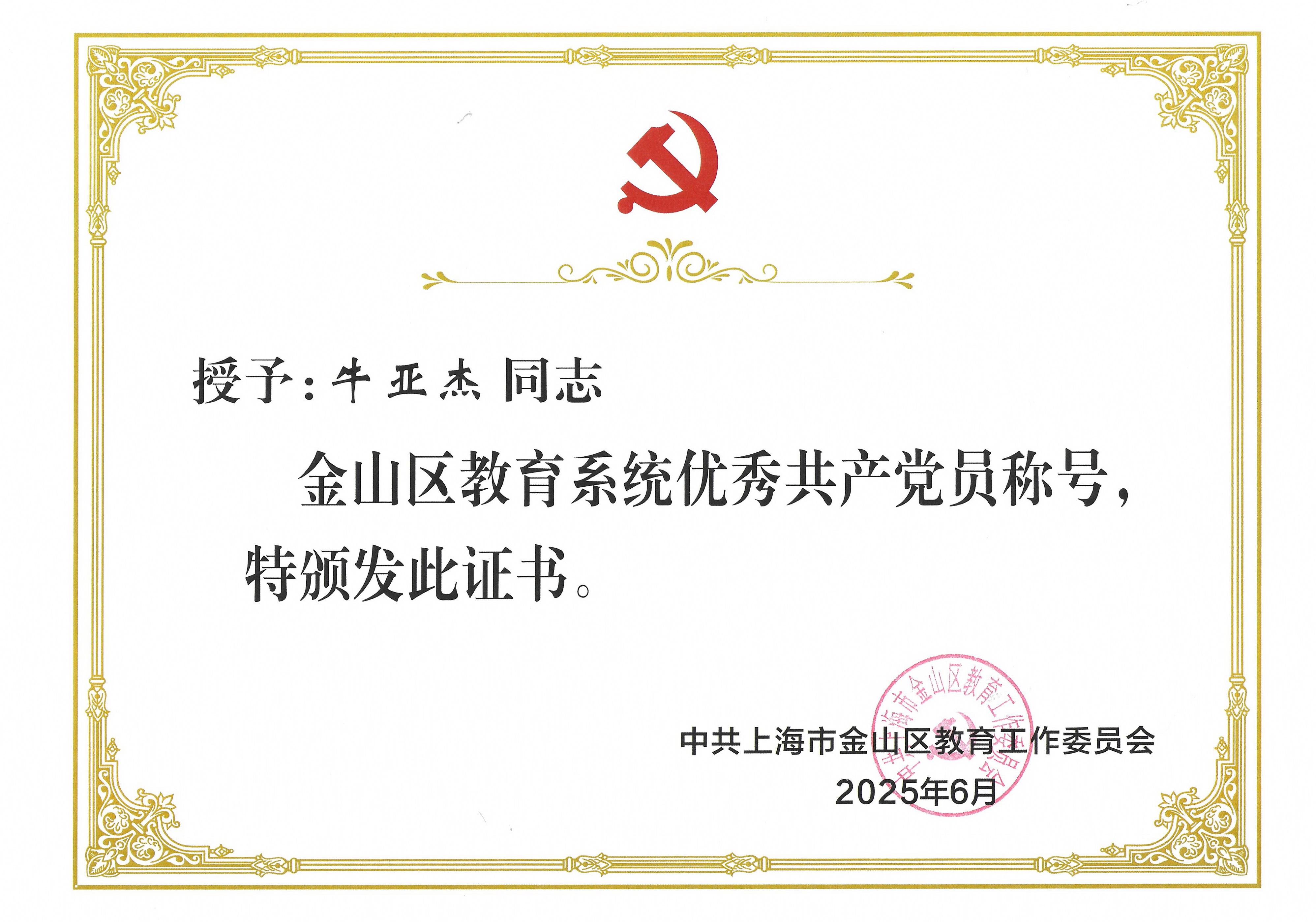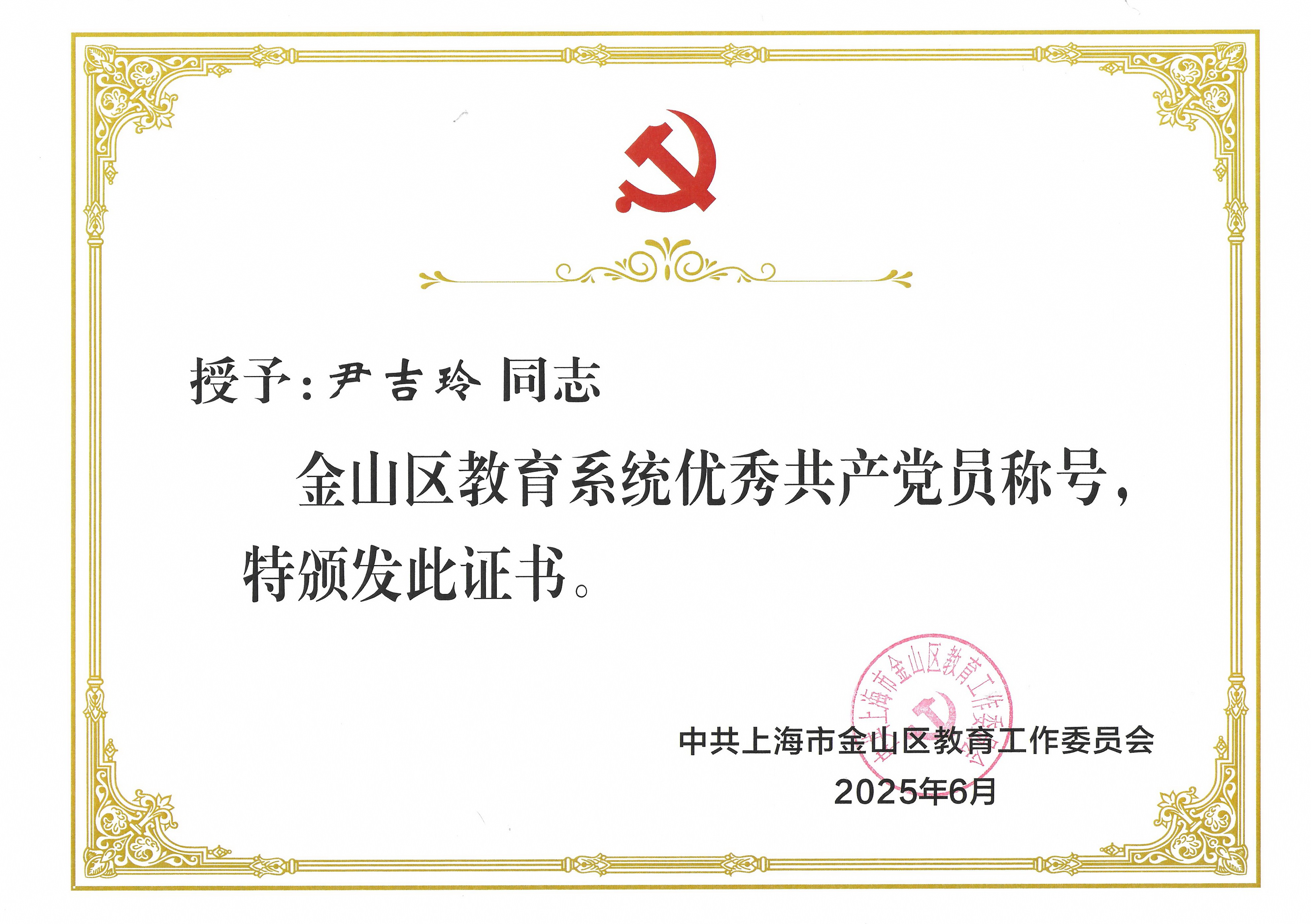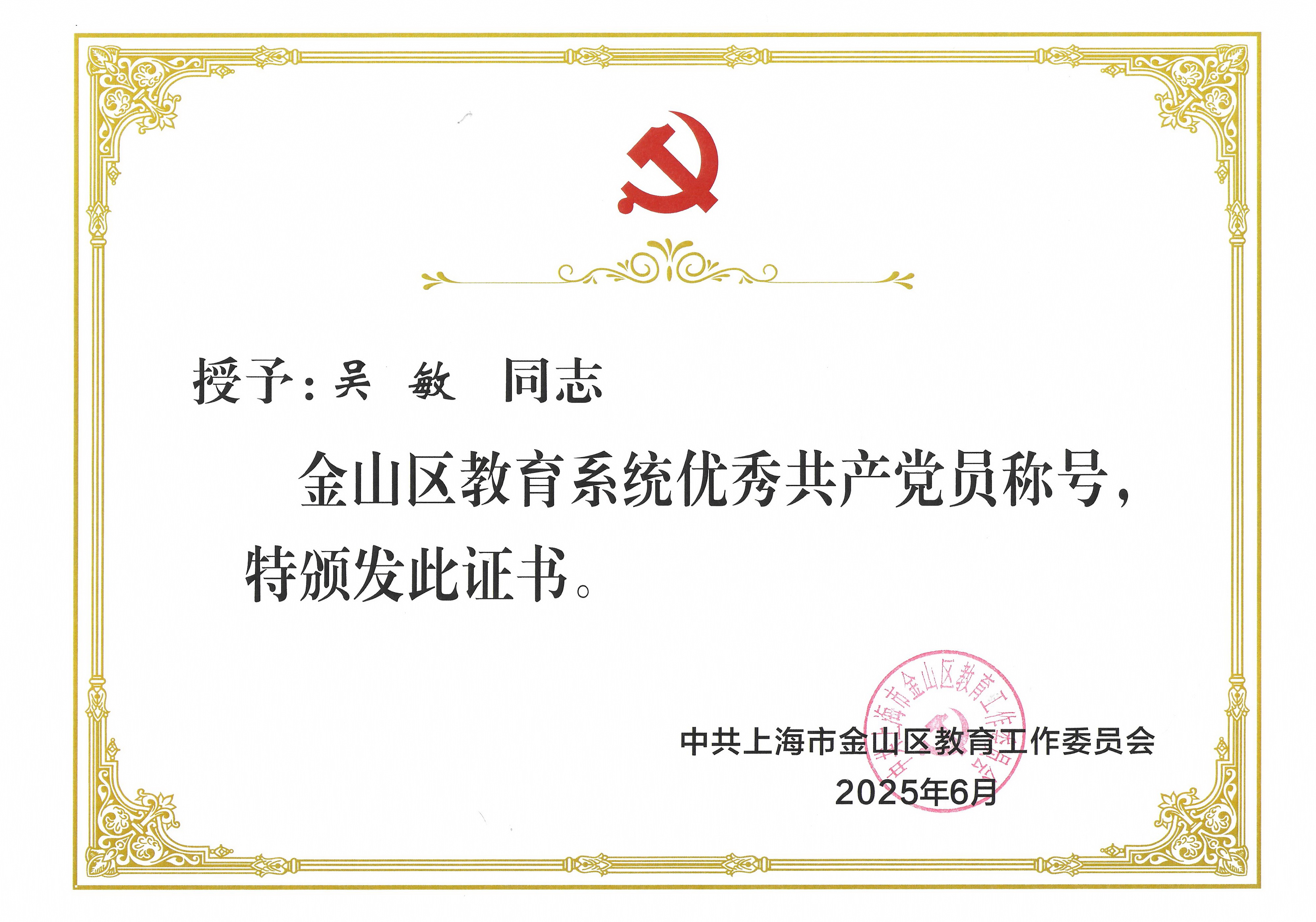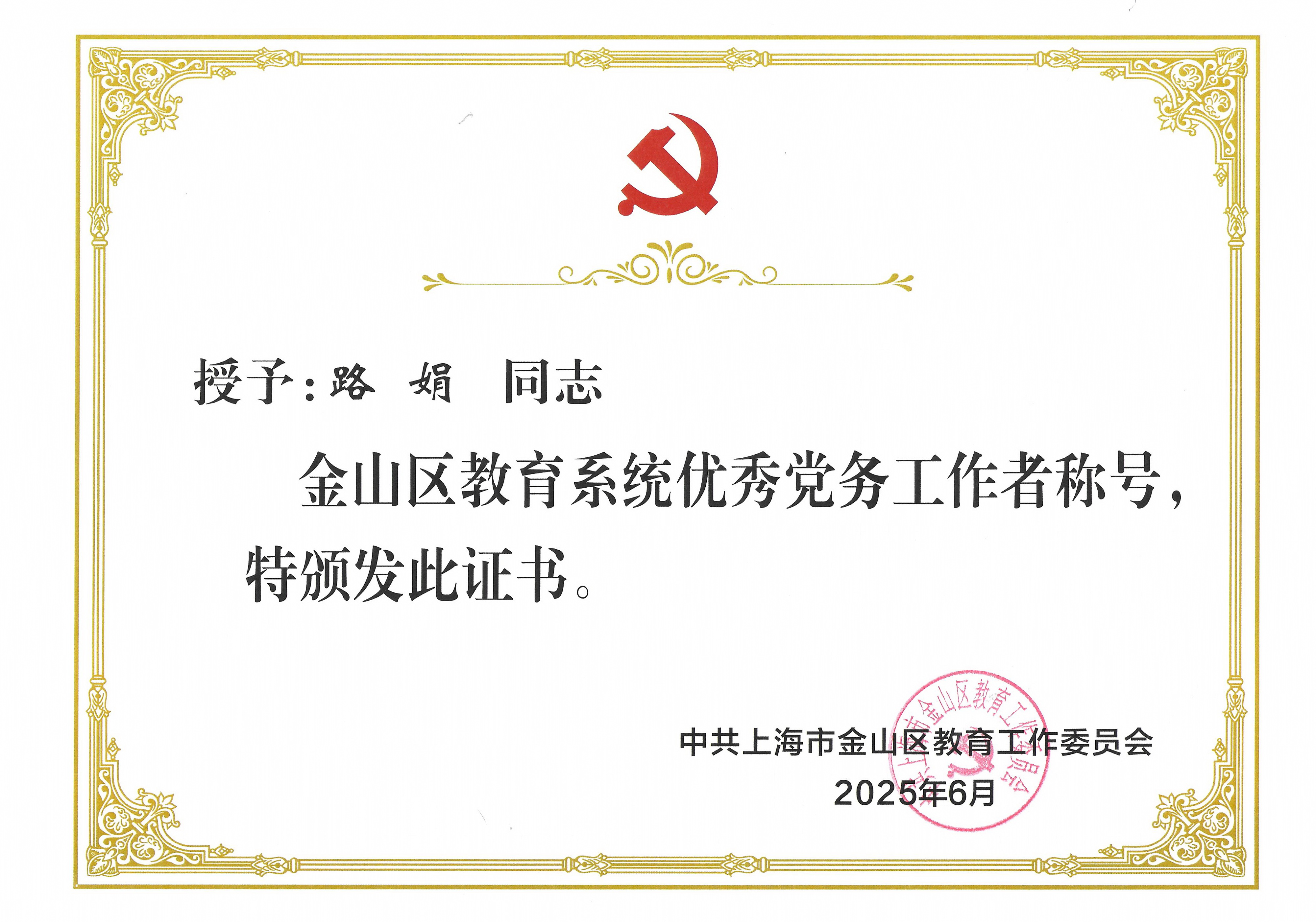 为进一步激励金山区教育系统各基层党组织和广大党员奋勇争先、建功立业,进一步营造落实立德树人、崇尚先进、争做先锋的浓厚氛围,进一步激发奋斗“十五五”、奋进新征程的磅礴力量,区教育工作党委组织开展了优秀共产党员、优秀党务工作者和先进基层党组织评选工作。学校党委高度重视,领会文件精神,通过自下而上、上下结合的方式,按照评选条件,严格把关,提出了推荐对象建议名单。最终,我校6名党员教师获此殊荣。其中,组织部部长、人事处处长路娟同志荣获“金山区教育系统优秀党务工作者”称号,马克思主义学院汤正东同志、化学工程学院高文杰同志、牛亚杰同志,智能制造学院院长吴敏同志,公共基础学院尹吉玲同志荣获“金山区教育系统优秀共产党员”称号。