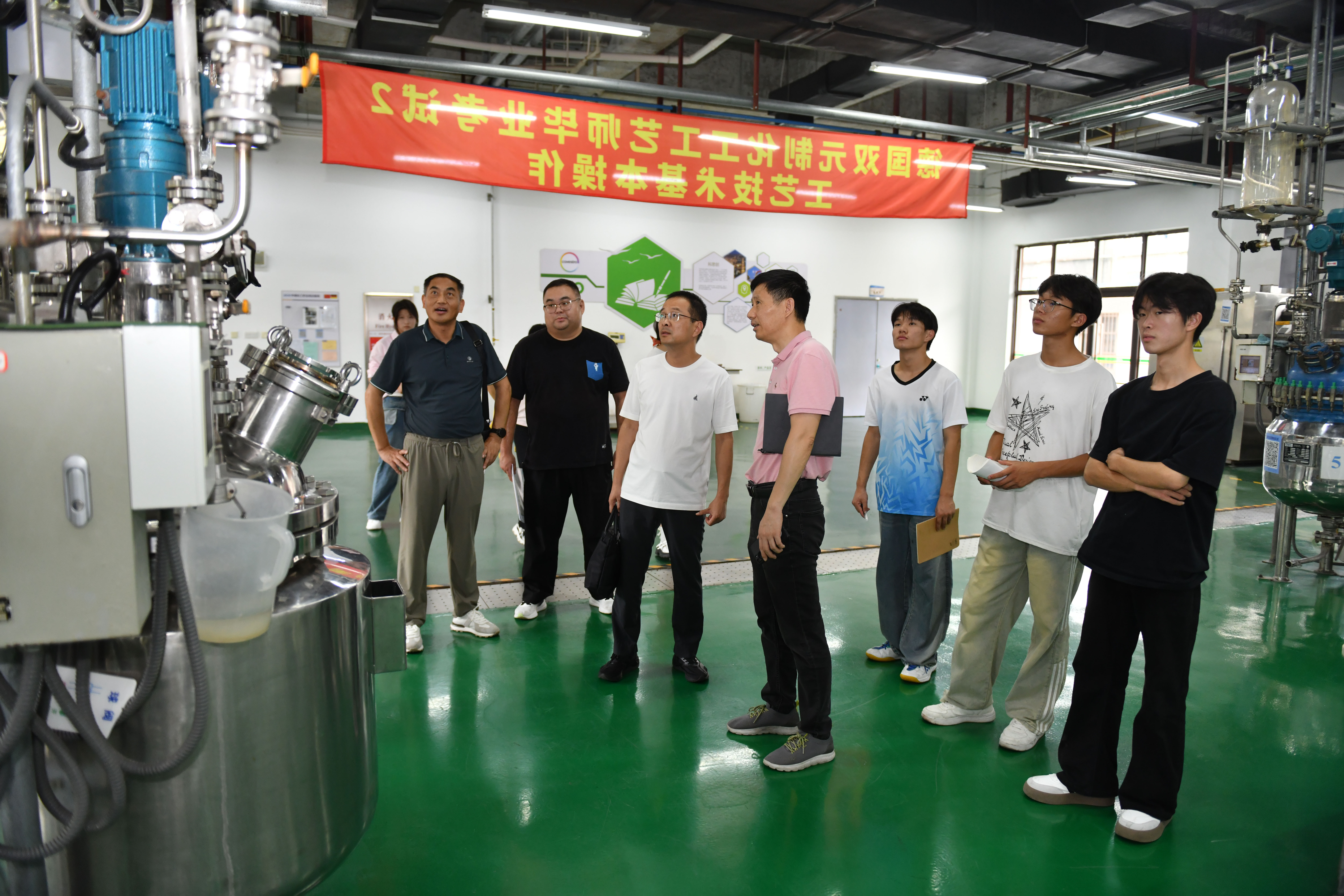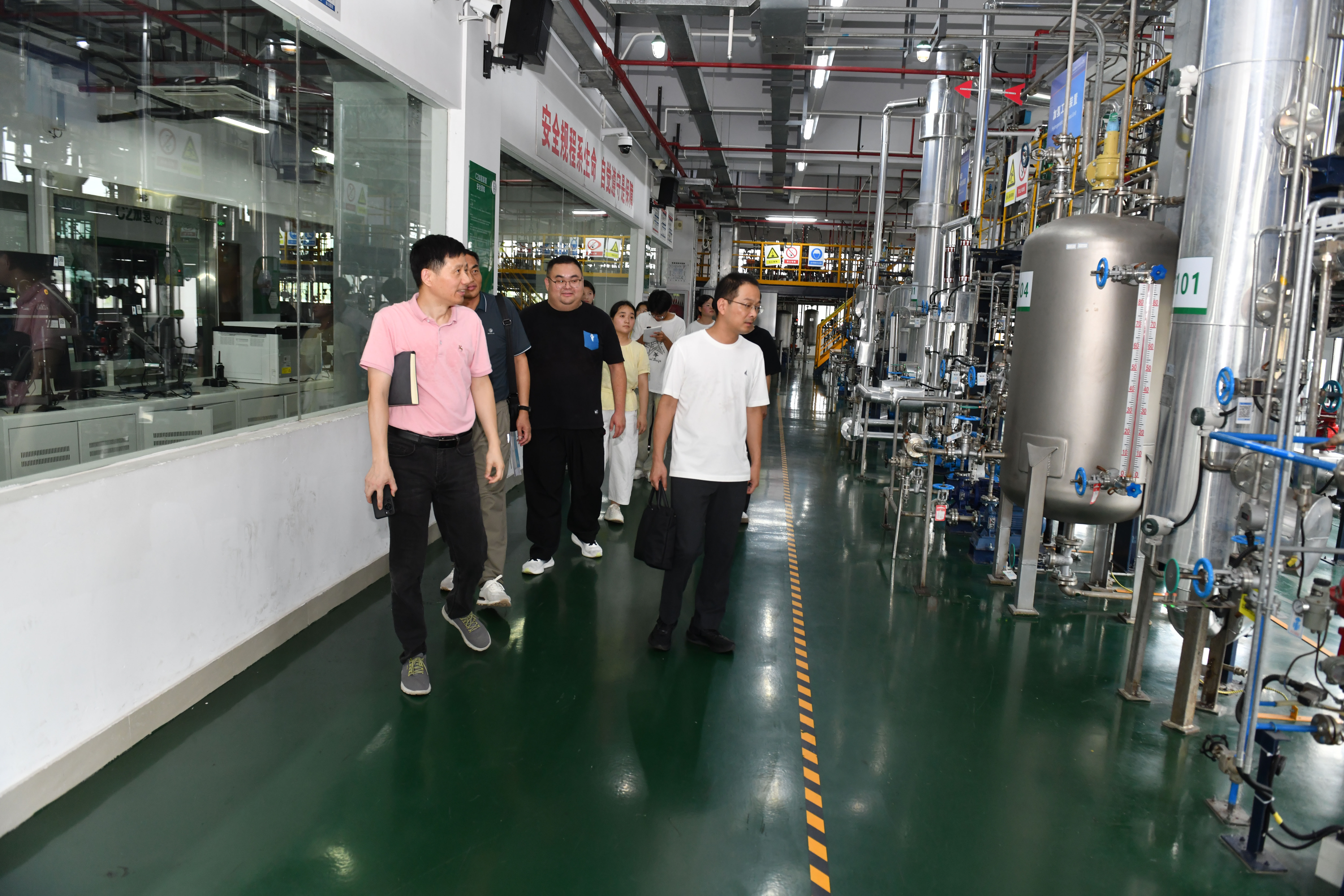 座谈前,何士亮一行参观了学校的标志性实训场所——跨企业培训中心与化工综合实训大楼。该中心融合智能制造、化工操作及安全应急演练功能,配备科思创、赢创等国际企业合作共建的实训基地,其先进的设备和“职前职后一体化”的培养模式曾获上级主管部门及同行的高度评价。来访嘉宾对学校“产教融合、校企协同”的实践成果予以高度赞赏。