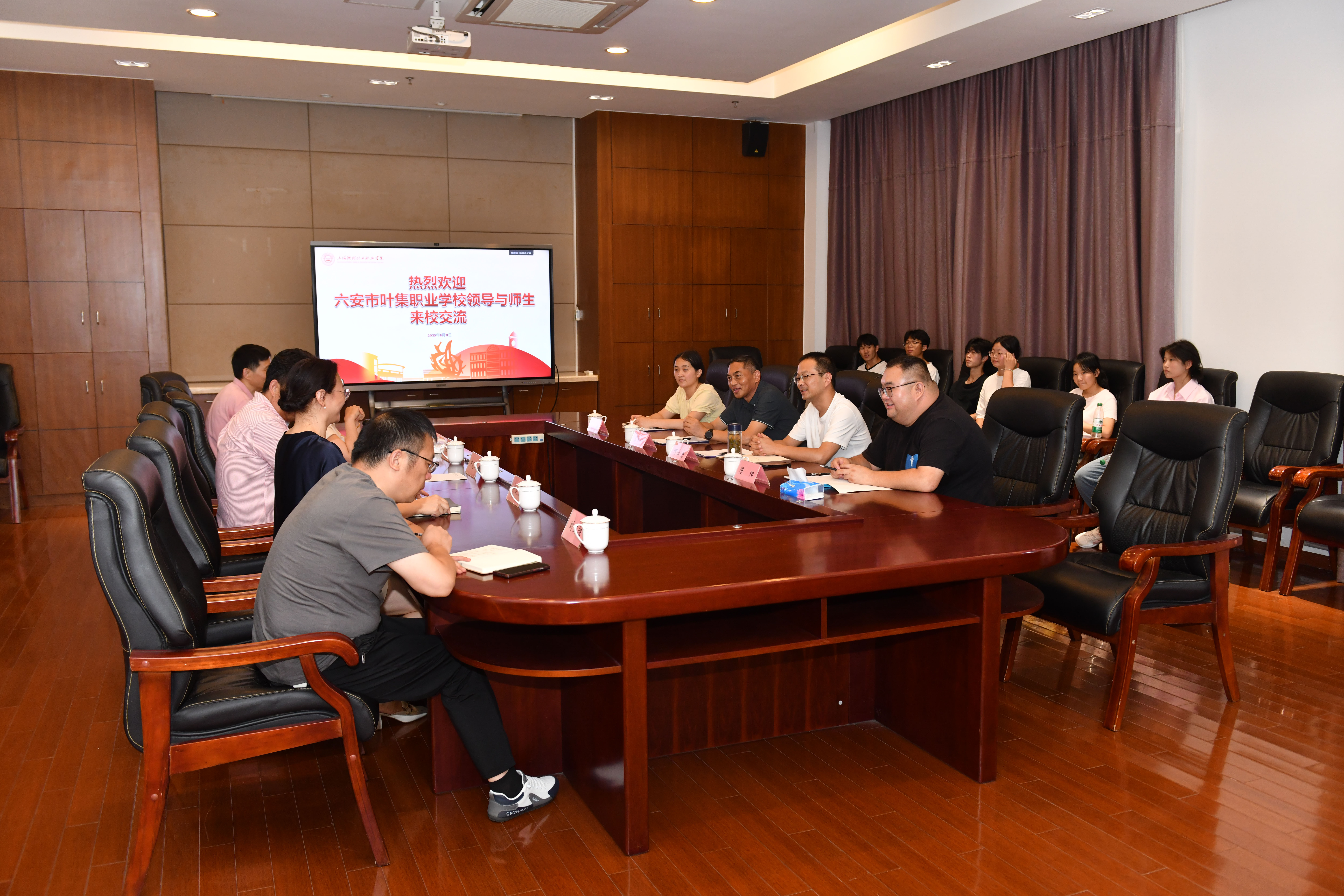 在座谈会上,双方对自2023年签订合作协议以来,在师资培训、专业建设以及人才培养等领域所取得的合作成果进行了回顾。此次会谈着重围绕“技能大赛联合集训”这一深化合作的重点展开,明确提出将充分运用上海现代化工职业学院的国家级实训基地资源,为叶集职业学校参赛的师生提供赛前强化训练与技术支持。座谈会中,陈晓斌校长希望学校相关职能部门与二级学院能为即将前来参加培训的6名学生及指导教师量身定制并落实赛事技能提升方案,以确保技术指导精准无误、后勤保障周到细致。
