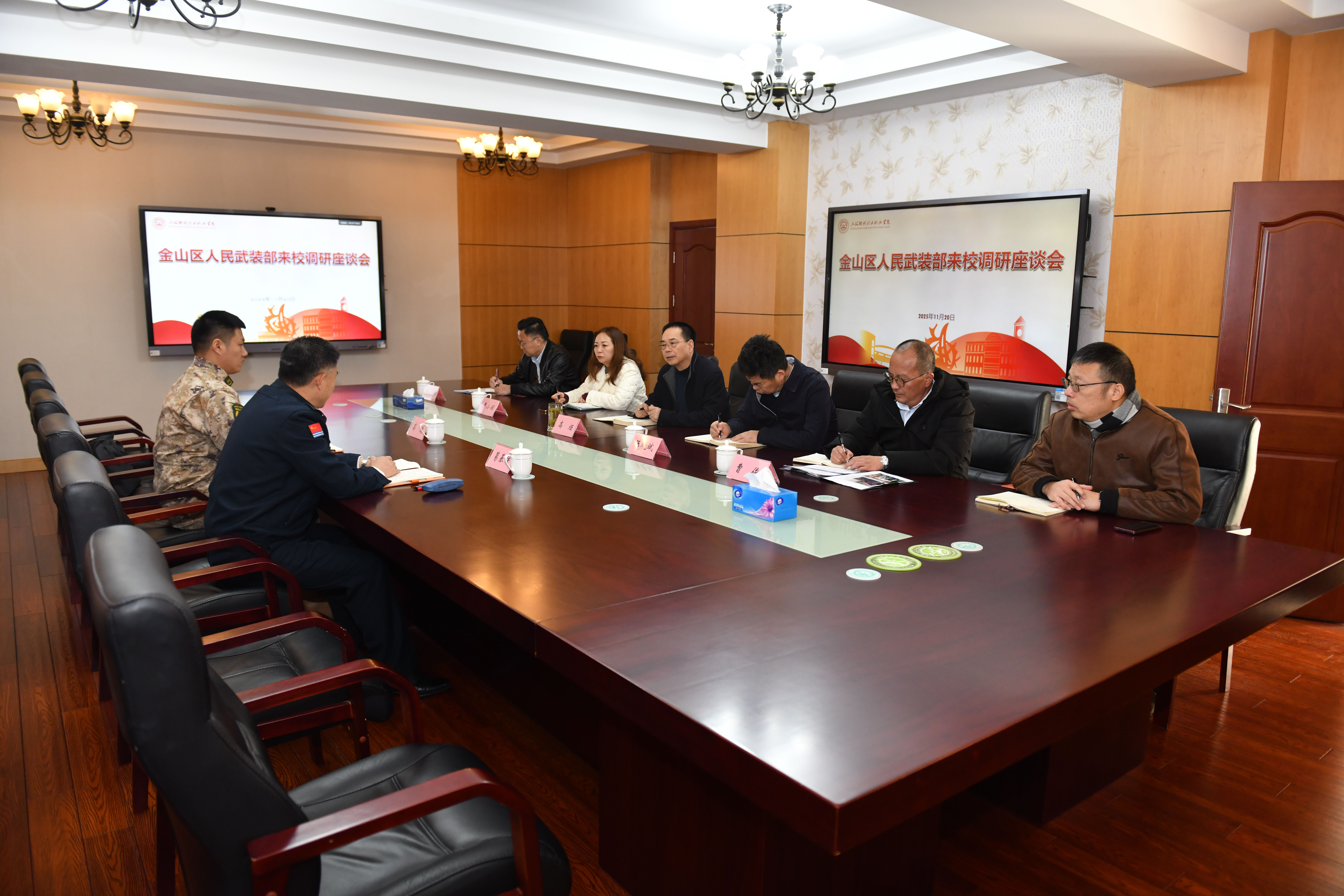 在调研座谈会上,学校汇报了自新高职成立以来在上述领域的工作进展与取得的成效,分享了学校在武装部建设、军训质量提升、征兵工作对接等方面的具体做法与面临的挑战,展示了“军民融合、产教融合”双轮驱动的成效。双方在座谈中就深化校地合作、完善武装部职能、加强学生军事社团建设等方面达成共识,并约定进一步强化沟通机制,有效开展工作交流与联合教育。
