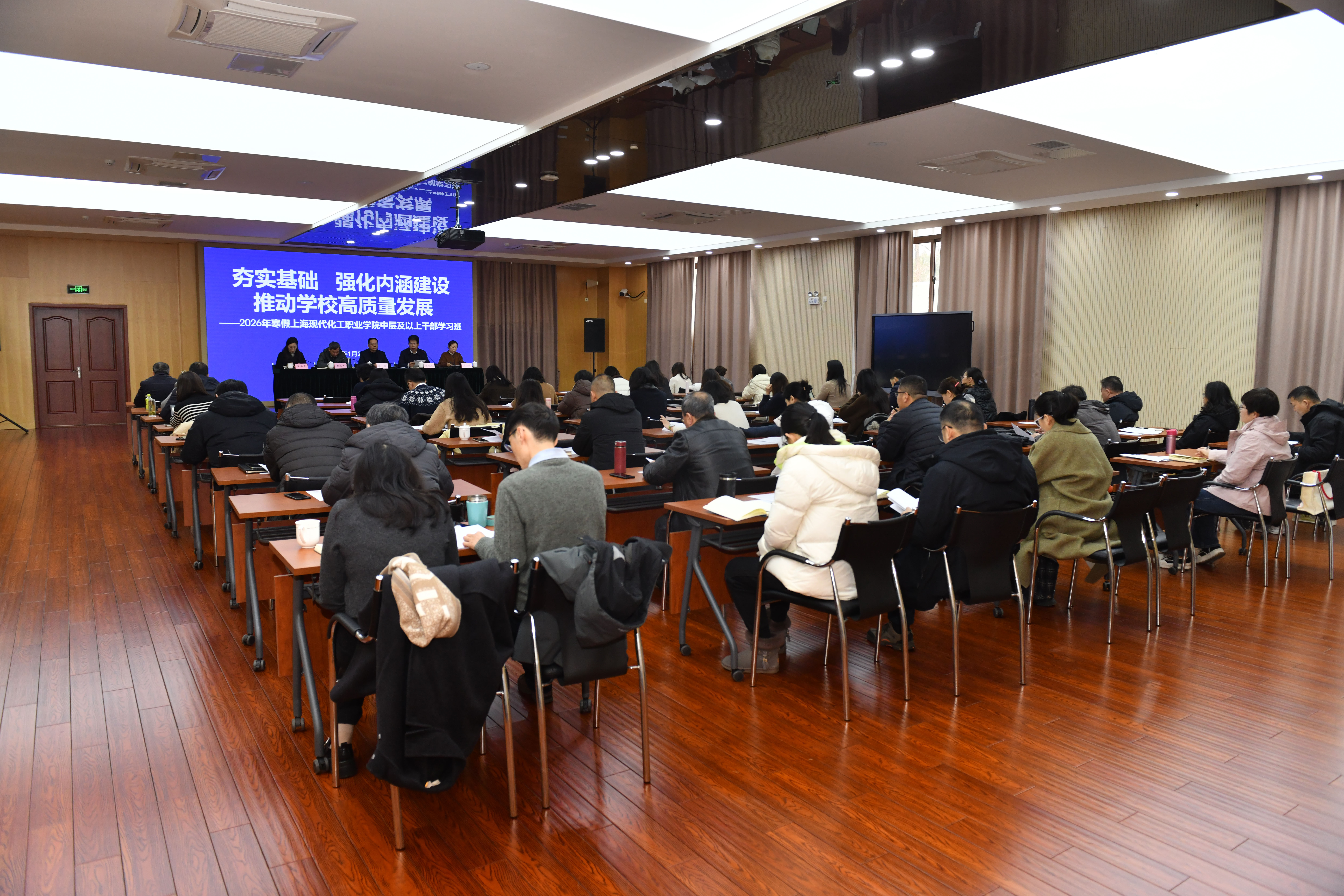 1月27日,为进一步统一思想,强化落实,学校在多功能厅组织召开2026年寒假中层及以上干部学习班。党委书记高炬、校长陈晓斌出席会议并讲话。本次学习班以“夯实基础、强化内涵建设,推动学校高质量发展”为主题,通过集中学习与专题研讨相结合的方式,着力提升干部队伍理论素养和履职能力。