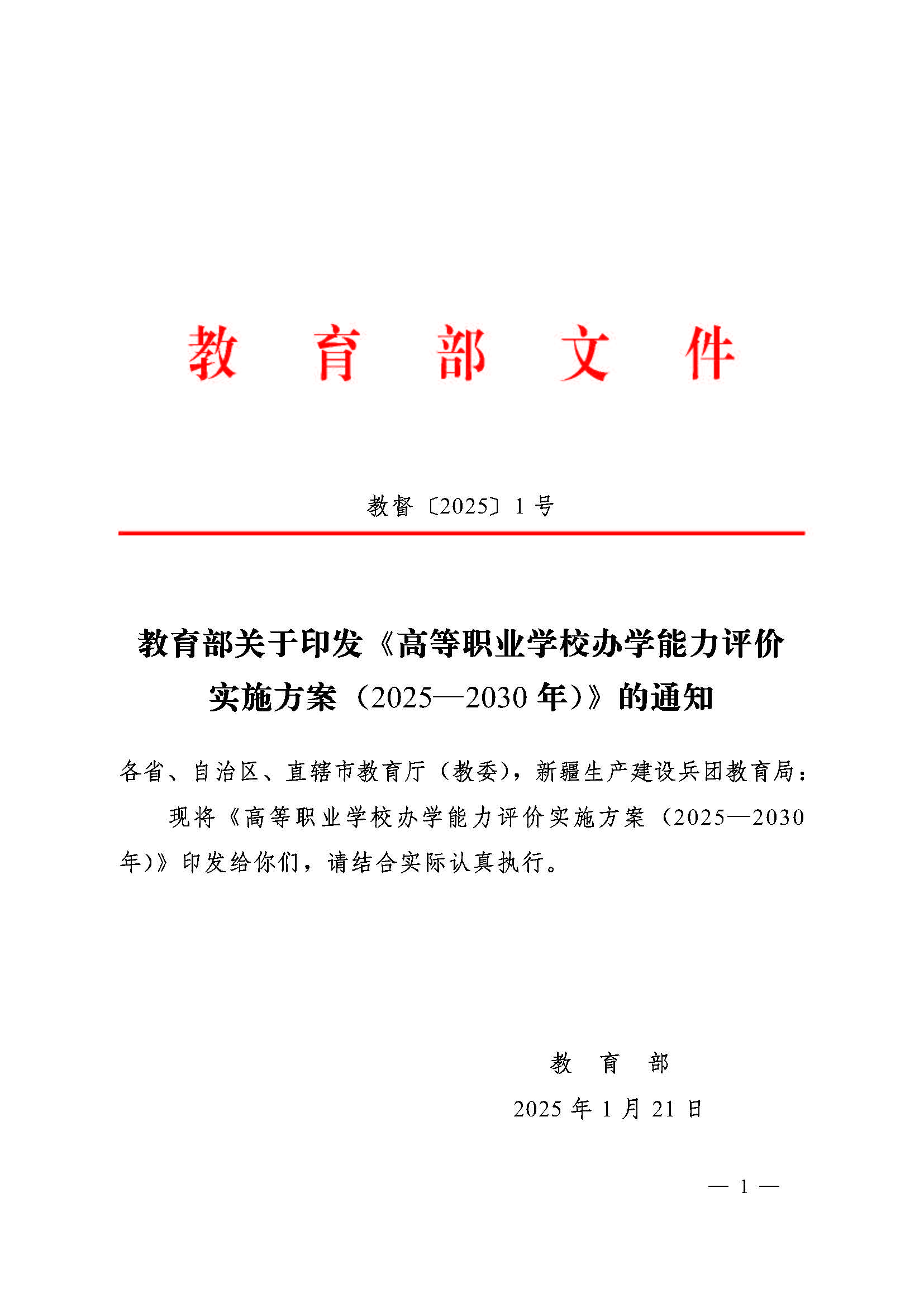 教督〔2025〕1号 教育部关于印发《高等职业学校办学能力评价实施方案(2025—2030年)》的通知.pdf