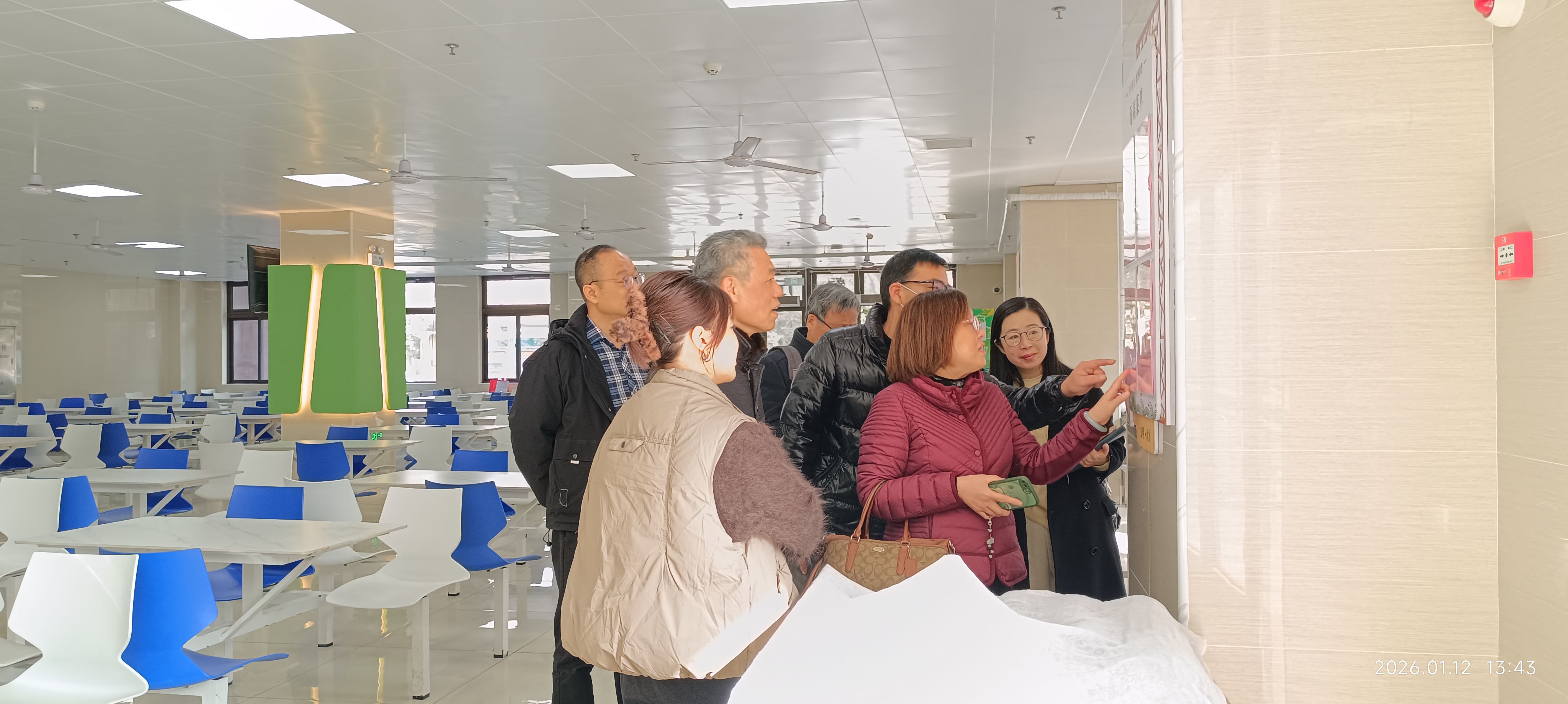 1月12日,金山区职终教督导组专职督学顾燕、挂牌督导沈栋鑫和金四云一行3人莅临学校,围绕校园餐管理工作与校园悬挂牌子清理规范两大重点工作开展专项督导,通过实地核查、台账查阅、交流反馈等方式,助力学校优化管理、提升服务质效。学校质量管理办公室、后勤保障部等相关部门负责人一起参加了实地督导和座谈。