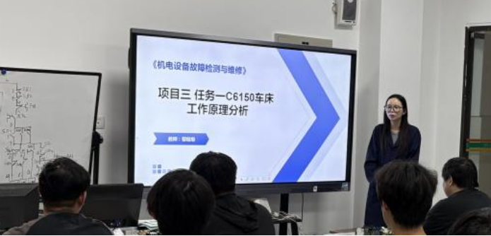 6月13日下午,智能制造学院鄢熔熔老师在数控实训大楼306实训室开设题为《项目三 任务一C6150车床工作原理分析》的公开课。徐文明“名师工作室”导师徐文明、成员谷红霞及组内臧欢老师前来听课评课。