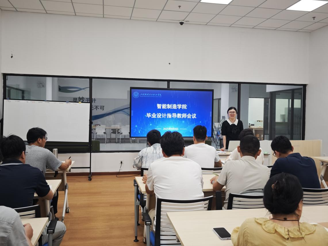 为扎实推进2026届毕业设计工作落地见效,保障毕业设计各环节规范有序开展。9月4日下午,智能制造学院在智能制造大楼202室召开毕业设计指导教师专题会议。院长吴敏及全体毕业设计指导教师参加会议,会议由学院副院长陈姗主持。